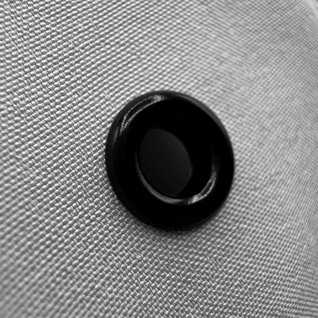 Keine Laserlöcher, sondern metallverstärkte Ösen für Atmungsaktivität bei wärmendem Material.